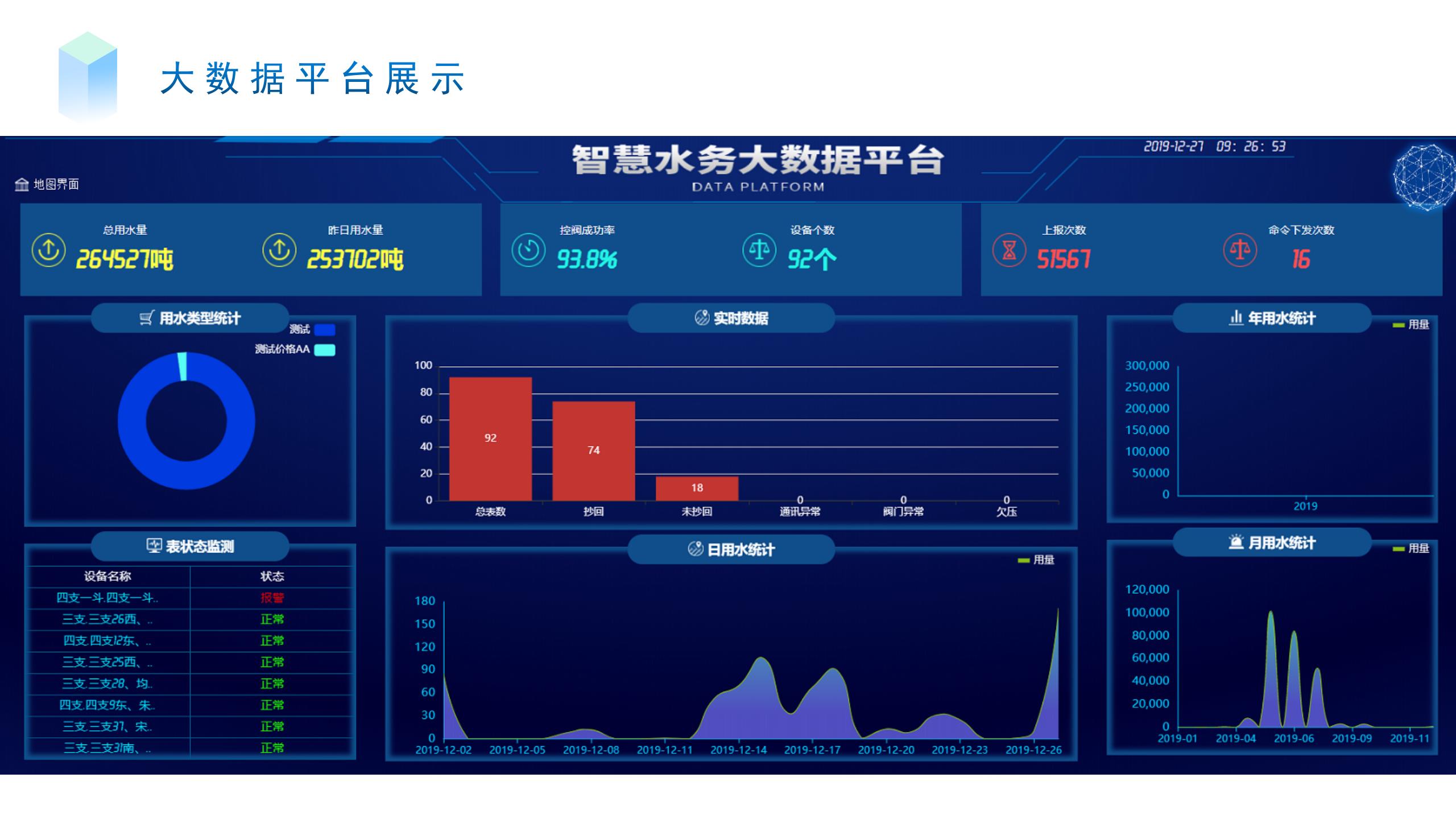 提升水務(wù)管理決策的科學(xué)化水平,利用大數(shù)據(jù)分析能力提升各類業(yè)務(wù)應(yīng)用場(chǎng)景的識(shí)別、判斷、管控、執(zhí)行水平,為水安全、水資源、水環(huán)境等決策提供輔助支撐。
